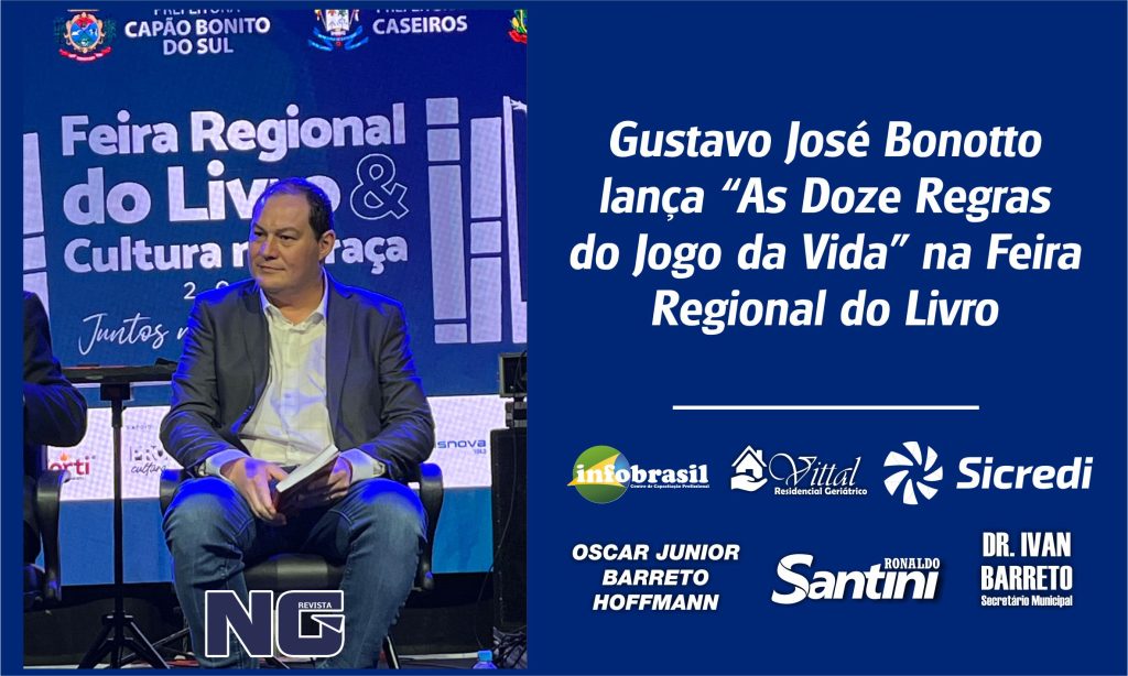 A Feira Regional do Livro e Cultura na Praça 2025, em Lagoa Vermelha, também foi marcada pelo lançamento do livro “As Doze Regras do Jogo da Vida”, do escritor e ex-prefeito Gustavo José Bonotto, que apresentou ao público sua primeira obra literária, reunindo reflexões sobre fé, propósito e superação.
